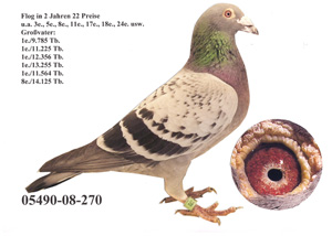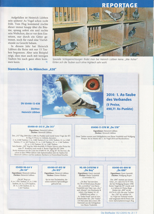 Der 05490-89-455 vom Vereinskollegen Horst Kuipers, Nordhorn, ist mütterlicherseits auch eine Ruwen-Taube. Insofern kann man sagen, dass väterlicherseits alles auf dem Vogel „KING 30“ basiert.