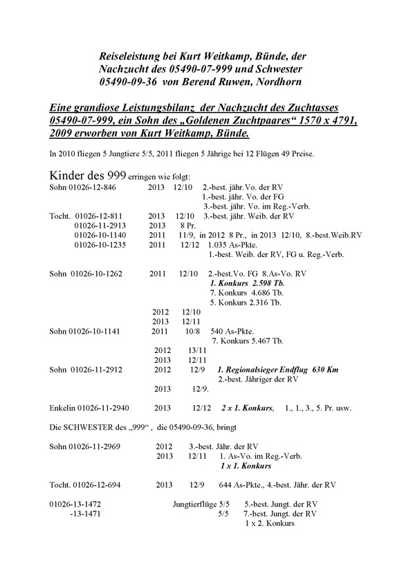 Erfolge mit Ruwen-Tauben: K. Weitkamp